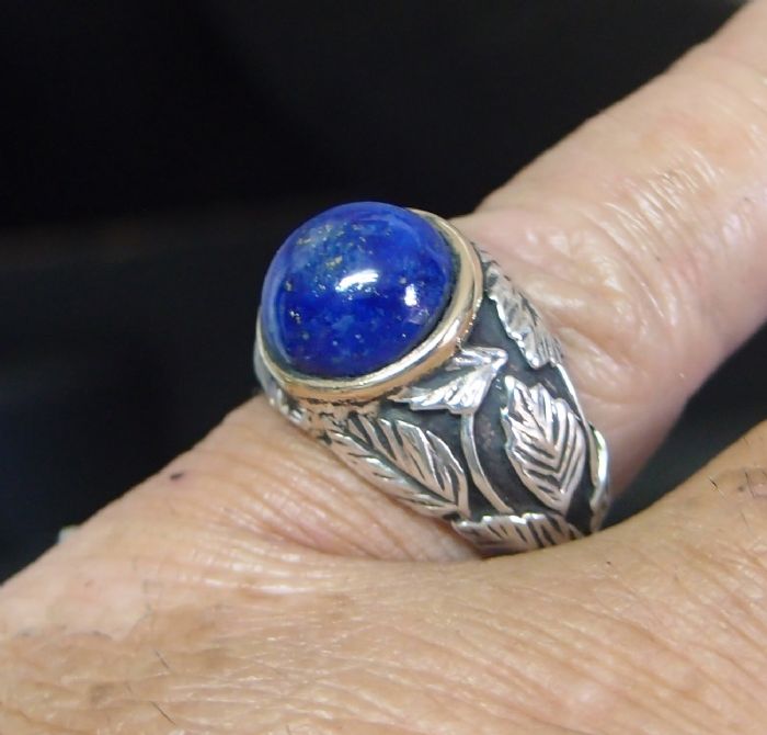 הפרח הכחול טבעת כסף עלים יפיפיה בעבודת יד משובצת